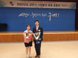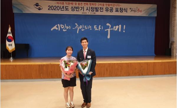 구미시청운동선수단 이강호, 정정윤선수가 지난 21일 구미시청 대강당에서 ‘2020년도 상반기 시정발전 유공표창’을 수상하였다.