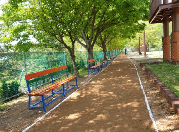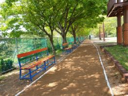 수련교육 참가 학생과 인솔 교사 등 이용자들이 맨발로 흙길을 걸으면서 힐링할 수 있는 있도록 만들었다. 주변 벤치들도 빨강, 파랑, 초록 등 다양한 색깔로 재단장했다.