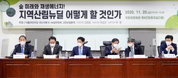 산림청은 20일 국회 의원회관 제9 간담회의실에서 산림을 활용하여 국가균형발전 방안을 모색하고 인간과 자연이 공존하며 지역 일자리를 창출하기 위한 ‘숲 미래와 재생에너지! 지역산림뉴딜 어떻게 할 것인가’ 국회토론회를 개최했다.