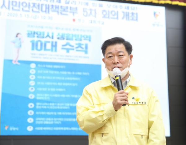 특히 시는 정부의 5대 기본생활수칙보다 한층 강화된 광명시의 10대 생활방역 수칙을 전달하고 수칙 준수를 당부했다.