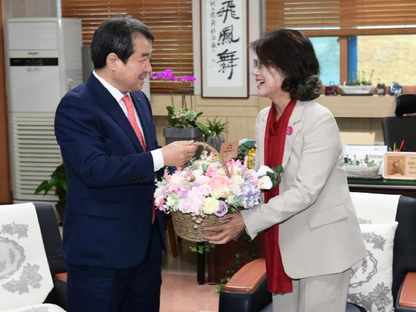 김충섭 김천시장은“제39회 스승의 날”을 맞이하여 지난 15일 김천교육지원청을 방문하여 마숙자 교육장과 선생님들에게 감사의 마음을 전했다.
