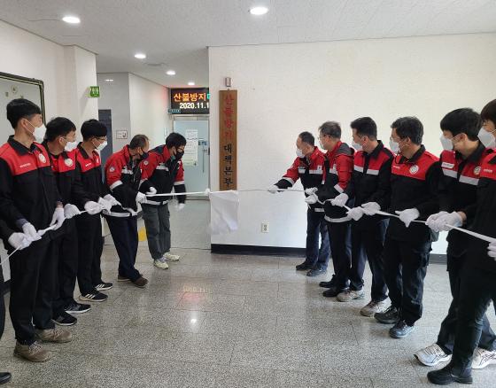 [중앙방송, 김영진 기자] 중부지방산림청은 1일, 가을철 산불조심기간(11.1∼12.15)을 맞아 산불방지대책본부 현판식을 갖고 산불방재를 위한 본격적인 비상근무에 들어갔다.