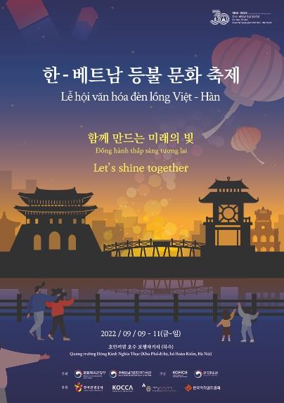 9월 9일에는 한국의 ‘청사초롱’과 베트남 ‘호이안 등’으로 희망과 미래를 상징하는 등불거리를 만들어 양국이 만들어 갈 번영의 미래를 기원하고, 10일과 11일에는 흥겨운 문화공연을 진행한다. 특히 10일에는 양국의 미래세대인 ‘한-베 소년소녀 합창단’이 희망찬 내일을 함께 노래하고, 유명 케이팝 가수 효린과 신인 아이돌 엠시엔디(MCND), 베트남 국민 배우 겸 가수인 호앙 투이 린, ‘더 보이스 베트남’ 우승자 득푹 등 양국 대중문화예술인들이 관객과 호흡하며 열정의 무대를 선보인다. 베트남 한국국제학교 학생들로 구성한 풍물단과 베트남의 케이팝 커버댄스팀은 축제의 열기를 더한다. 양국 전통 놀이를 비롯해 한식과 한복, 한글, 관광, 음악 콘텐츠 등 다양한 한국 문화체험 행사도 마련해 특별한 재미를 선사한다.