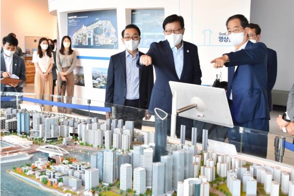 한 총리는 먼저 부산시장으로부터 엑스포 준비상황 전반을 보고받고, 엑스포 예정부지인 북항 일원을 확인했다.