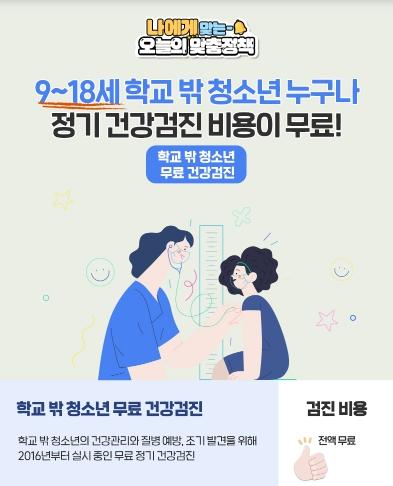 학교 밖 청소년의 건강관리와 질병 예방, 조기 발견을 위해 2016년부터 실시 중인 무료 정기 건강검진