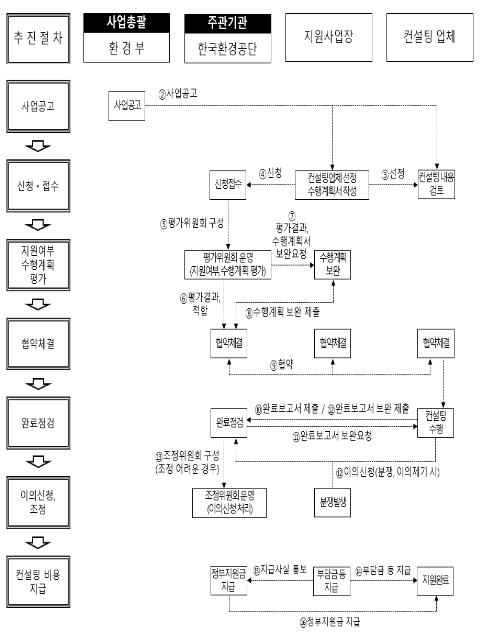환경부와 한국환경공단은 지원사업의 자세한 내용을 안내하기 위해 9월 14일부터 이틀간 각각 경기도 안산시 반월산업단지, 대구광역시 대구염색산업단지에서 사업설명회를 개최하며, 9월 21일부터 사업공고 후 희망업체에 대해 신청을 받을 예정이다.