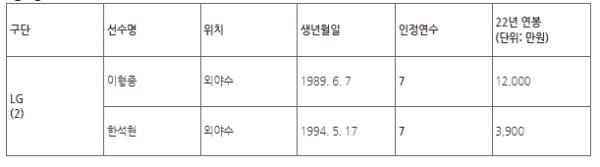 승인된 선수는 LG 이형종, 한석현으로 총 2명이다.