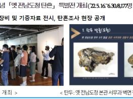 [중앙방송, 김혜영기자] 문화체육관광부와 광주광역시, 옛전남도청복원범시도민대책위로 구성된 옛전남도청복원협의회는 12월 1일 오후 2시, 옛 전남도청 별관에서 ‘옛 전남도청 복원사업 추진경과 보고회’를 개최한다. 이번 보고회에서는 2019년 3월의 옛 전남도청 복원 기본계획 대국민설명회 이후 추진해온 복원사업 진행 과정과 앞으로의 계획을 발표한다.