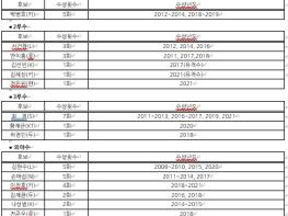 ‘5관왕 MVP’ 이정후(키움)는 외야수 부문 최다 연속 수상 타이기록을 가시권에 뒀다. 2018년 이후 매년 골든글러브를 수집하고 있는 이정후가 올해도 수상하게 되면 5년 연속(`83~`87) 수상한 장효조(전 롯데)와 함께 외야수 부문에서 가장 많은 골든글러브를 획득한 선수가 된다.