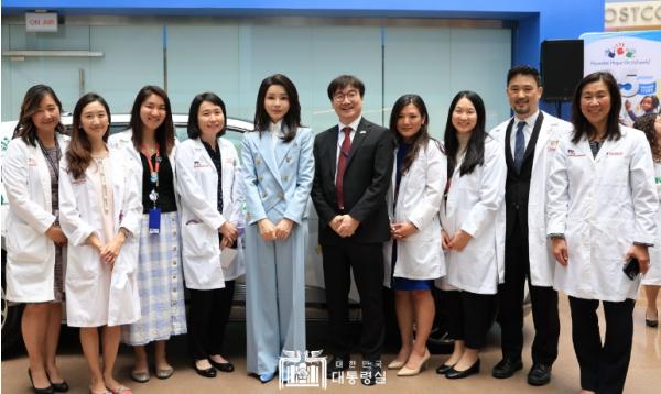 김 여사는 “역경을 이겨내기 위해 싸운 모든 아이들이 용기란 무엇인가를 보여준 진정한 영웅”이라면서, “이 아이들이 미국뿐 아니라 세계의 변화를 주도할 주역이 될 것으로 확신한다”고 말했다. 또한 김 여사는 미술치료실과 힐링가든 등을 둘러보며 “힘든 치료를 견뎌내고 정서적으로 안정될 수 있는 환경이 중요하다”면서 병원 관계자들에게 “우리 아이들의 마음까지 잘 보듬어 달라”고 당부했다. 아이들은 김 여사의 병원 방문을 기념하며 직접 그린 태극기 그림을 선물하기도 했다.