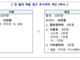 이에, 국토교통부는 전?월세 매물 광고 시 월별로 일정 금액이 부과되는정액관리비에 대해서는 부과내역을 세분화하여 표시하도록 하고, 온라인 중개플랫폼에도 표준화된 입력 기능을 마련하여 임차인이 해당 매물의 관리비 부과내역 등 정보를 명확히 확인할 수 있도록 할 예정이다.