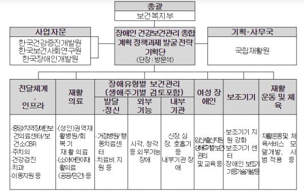 해당 기획단은 방문석 단장(국립교통재활병원장)을 중심으로 장애인 건강보건관리정책 분야 학계·전문가·관계단체·자문기구 등이 참여하여 정책 여건을 진단하고 중장기적으로 추진이 필요한 주요 정책과제를 발굴할 예정이다.