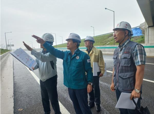 이어서, 남북도로공사 현장을 찾아 폭우 대비한 준공을 앞둔 공사현장교량 등 구조물과 포장면피해상황 점검과 도로교통시설 등을 집중적으로 점검 관리했다.