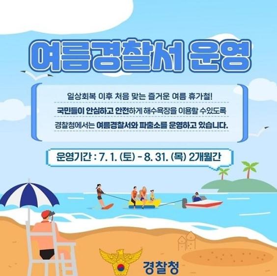 국민들이 안심하고 안전하게 해수욕장을 이용할 수있도록?경찰청에서는 여름경찰서와 파출소를 운영하고 있습니다.