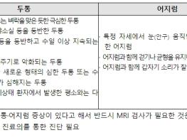 뇌질환과 무관한 두통·어지럼에 MRI 검사가 남용되는 것을 방지하기 위하여 뇌질환이 의심되는 두통·어지럼에 대한 급여기준을 구체화했다.