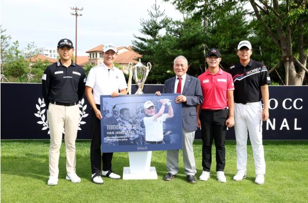 포토콜에는 본 대회 호스트이자 KPGA의 창립회원인 한장상 고문(83)을 비롯해 KPGA 코리안투어 선수회 권성열(37.브릭) 대표, ‘디펜딩 챔피언’ 배용준(23.CJ)과 항저우 아시안게임 대표인 조우영(22.우리금융그룹), 장유빈(21)이 참가했다.