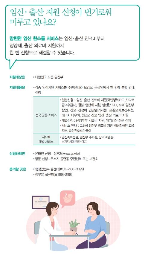 · 각종 임신지원 서비스를 주민센터와 보건소, 온라인에서 한 번에 통합 안내, 신청