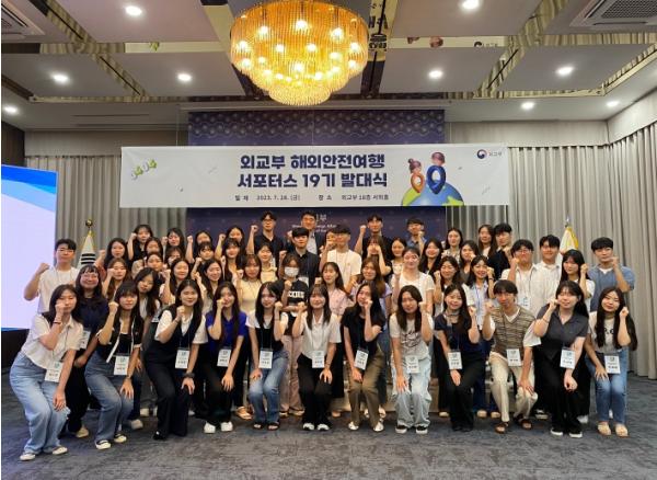 [중앙방송, 이엘리야기자] 외교부는 7월 28일 제19기 해외안전여행 대학생 서포터스 발대식을 개최했다. 제19기 서포터스는 전국에서 총 60명이 선발되어, 발대식 이후 지역별로 팀을 구성해 올해 12월까지 온·오프라인 방식으로 해외안전여행 관련 적극적인 홍보 활동을 펼쳐나갈 예정이다.