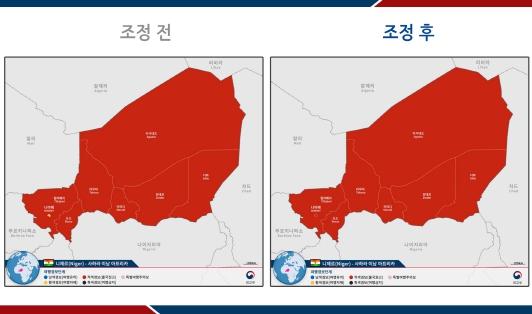 [중앙방송, 이엘리야기자] 외교부는 최근 니제르 내 쿠데타 발생에 따라 현지 정세 및 치안 등이 급속히 악화되고 있어, 우리 국민의 안전을 위해 니제르 전 지역의 여행경보를 8월2일부로 3단계(출국권고)로 조정했다.