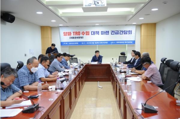 국회 농해수위 안호영 의원은 (전북 완주?진안?무주?장수, 더불어민주당)은 1일 오후 3시 30분에 국회 의원회관 제5간담회실에서 정부 관계자 및 양파 생산자들과 함께 ‘양파 TRQ(저율관세할당) 수입 대책 마련 긴급간담회’를 개최해 양파 수입 9만톤 증량 정책을 전면 재검토해야 한다고 강력하게 지적했다.
