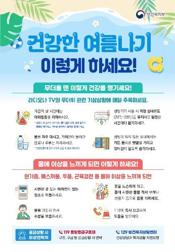 [중앙방송, 김혜영기자] 보건복지부는 시도 및 시군구와 함께 폭염 대책 기간(5.20~9.30) 동안 현장점검 등을 시행하여 폭염에 따른 노인 피해가 발생하지 않도록 지원을 강화하고 철저히 관리한다고 밝혔다.