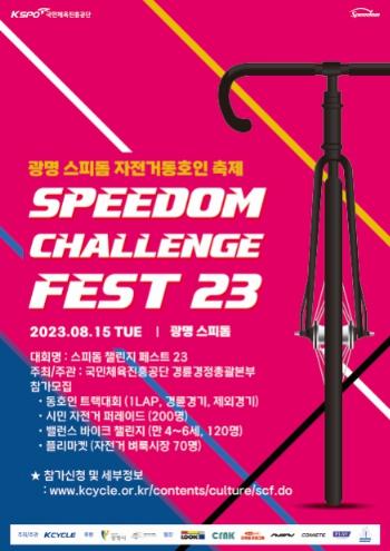 [중앙방송, 박노일기자] 광명시민과 자전거 동호인들이 함께 참여하는 자전거 문화저변확대 이벤트 스피돔 챌린지 페스트 ′23(Speedom Challenge Fest 23)가 8월 15일 광명스피돔 및 인근 도로에서 열린다.