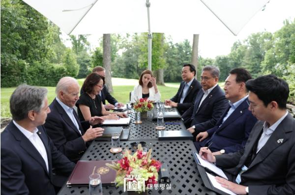 이번 한미 정상회담은 지난 4월 윤석열 대통령의 국빈 방미에 이어 약 4개월만에 개최된 것이다. 윤석열 대통령은 현대 외교사에서 중요한 의미를 갖는 캠프 데이비드에서 바이든 대통령과 회담을 갖게 되어 감회가 남다르다고 하고, 오늘 회담은 한미동맹이 보편적 가치를 바탕으로 세계의 자유, 평화, 번영을 위한 정의로운 동맹으로 도약하고 있음을 보여주는 것이라고 했다.