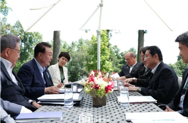 양 정상은 한미일 협력 발전의 획기적 이정표가 될 이번 3국 정상회의 계기에 한일 정상회담이 개최되는 것을 환영하면서, 한일 관계 개선에 힘입어 다양한 분야에서 양국간 협력이 속도감있게 진행되고 있음을 평가했다.
