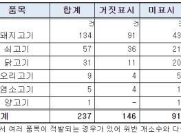 [중앙방송, 손미정기자] 국립농산물품질관리원은 여름 휴가철을 맞아 7월 17일부터 8월 18일까지(33일간) 축산물 원산지 표시에 대한 집중 단속을 실시한 결과 위반업체 209개소(237건)를 적발했다.