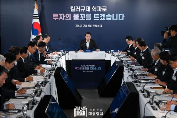 [중앙방송, 이선호기자] 윤석열 대통령은 오늘(8. 24, 목) 오전 구로디지털산업단지 G밸리산업박물관에서 ‘킬러규제 혁파 규제혁신전략회의’를 직접 주재하며 산업단지·환경·고용 분야 킬러규제 혁파 핵심 안건들에 대해 각 부처 장관들의 보고를 듣고, 민간 참석자들과도 심도 있는 토론을 했다.