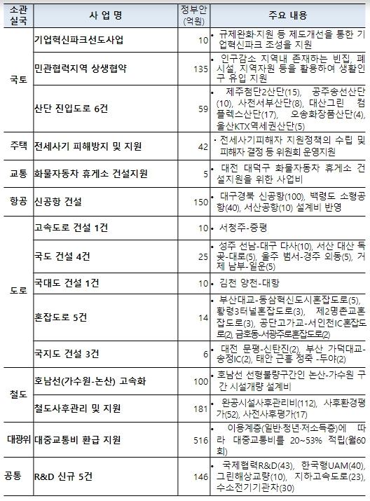 국토교통부는 윤석열 정부의 건전재정 기조를 반영하여 타당성과 효과성을 지표로 전체 사업 원점 재검토 등 강도 높은 지출구조조정을 단행했다.