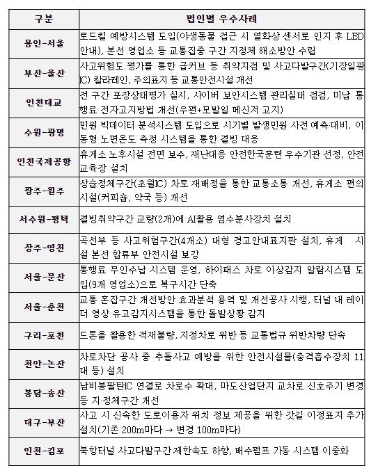 이번 평가결과 안전에 특성화된 신기술 도입을 통해 민자고속도로의 기술적 유지관리 수준과 민자도로사업자의 사고 예방을 위한 개선 노력이 향상되고 있는 것으로 분석됐다.