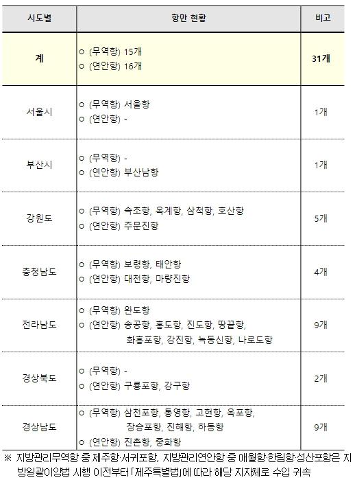 [중앙방송, 박정원기자] 해양수산부는 2024년부터 지방관리항만(무역항, 연안항)에서 발생하는 항만시설사용료 세입을 국가에서 지자체로 이관한다. 이는 ?지방일괄이양법? 시행(2021. 1. 1.)으로 지방관리항만 개발·관리 사무를 지자체로 이양함에 따른 후속 조치이다.