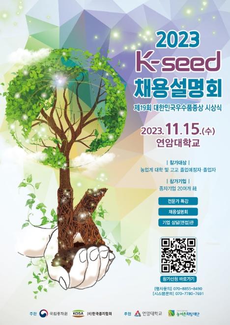 국립종자원(원장 김기훈)은 (사)한국종자협회(회장 김창남)와 종자산업 분야 젊은 인재 영입을 위해 개최하는「2023 케이-씨드(K-seed) 채용설명회」 참가 신청을 9월25일부터 11월8일까지 온라인 누리집을 통해 접수 받는다고 밝혔다.