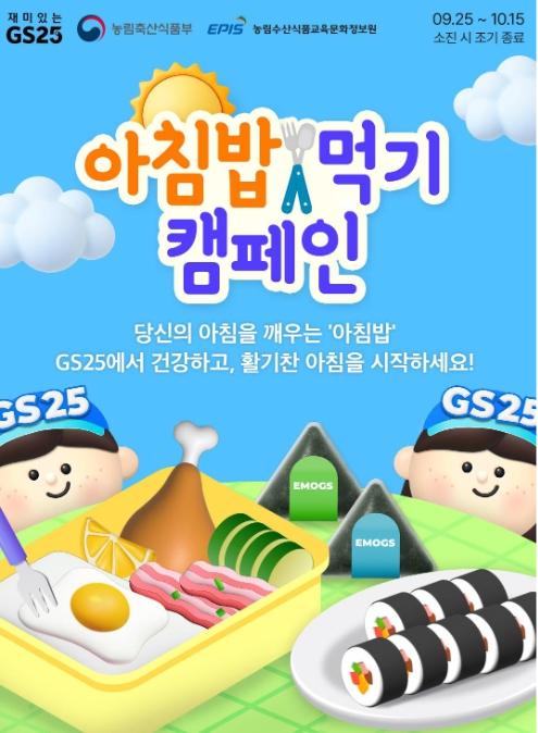 농림축산식품부)는 지에스(GS)리테일과 협업하여 아침밥을 챙겨먹는 건강한 식습관에 대한 인식을 높이고, 국산 쌀 소비 확대로 우리 쌀가공산업을 육성하고 농가 경영을 지원하기 위해 ‘전국민 아침밥 캠페인’을 진행한다.