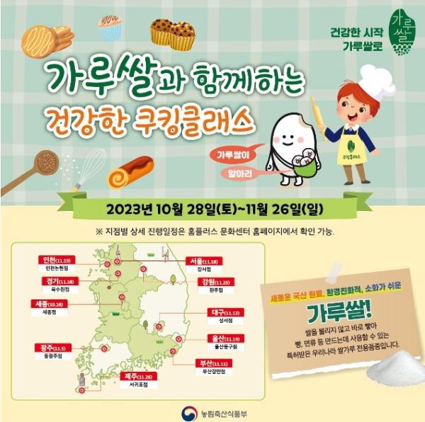 농식품부는 천원의 아침밥 참여대학 중 희망대학 10개교(총 2천명)에 대해 중간고사 기간인 10월 11일부터 20일 사이에 인근 지역제과점에서 만든 가루쌀빵을 제공한다. 천원의 아침밥과 함께 가루쌀빵을 간식으로 증정하고 추첨으로 편의점 쿠폰(5천원)을 지급한다. 홈플러스 문화센터에서는 10월말부터 전국 10개 지점에서 어린이와 학부모가 함께하는 가루쌀 요리 교실을 개최하고, 참여자에게 가루쌀(박력분200g)도 경품으로 제공한다.
