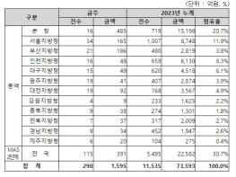 지역별 발주량을 보면, 총액계약 대상 1,204억 원 중 본청이 485억 원으로 40.3%를 집행하고 서울청 등 11개 지방청에서 719억 원을 각각 집행할 예정이다.