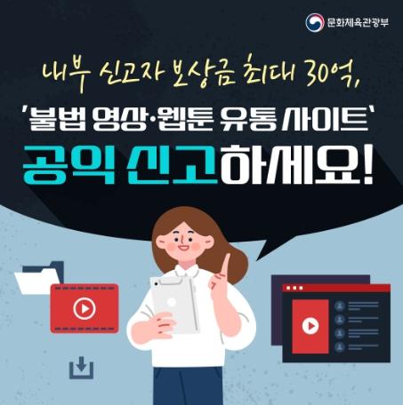 저작권법을 위반하는 단체 등에 소속되어 근무했거나 그 단체와 계약해 업무를 한 사람이 신고해 공공기관의 직접적인 수입 증대가 이뤄질 경우, 최대 30억 원을 지급합니다.(국민권익위원회)