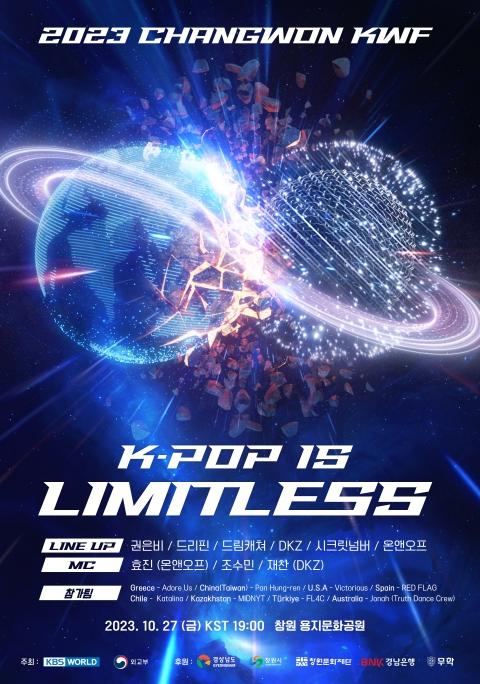 [중앙방송, 김혜영기자] 외교부와 한국방송공사(KBS)가 공동 주최하고 창원특례시와 경상남도청이 후원하는 지구촌 최대의 케이팝(K-pop) 축제 '2023 케이팝 월드 페스티벌' 최종 본선이 10월 27일 금요일 창원 용지문화공원에서 개최된다.