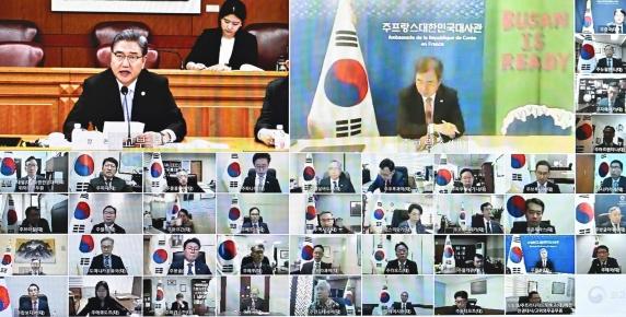 [중앙방송, 김영진 기자] 박진 외교부 장관은 2030 세계박람회 개최지 투표를 33일 앞둔 10월 26일 저녁 아시아·태평양 및 미주지역 공관장회의를 화상으로 개최하고, 부산세계박람회의 성공적 유치를 위한 국가별 막판 교섭 전략을 통한 총력전을 지시했다.