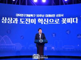 [중앙방송, 이선호기자] 윤석열 대통령은 11월 2일 오후 한국표준과학연구원에서 개최된 대덕 연구개발특구 50주년 미래 비전 선포식에 참석했습니다. 이번 행사는 학계, 대전의 기업, 연구소, 대학 관계자 및 지역 주민 300여 명이 함께 대덕 연구개발특구의 지난 50년 간의 성과를 기념하고, 앞으로 50년을 준비하기 위해 마련됐다.