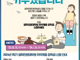 신청 기간은 2023년 12월 12일 9시부터 2024년 1월 9일 18시까지이며, 신청 대상은 법학전문대학원 신입생(입학예정자) 및 재학생으로 재단누리집에서 24시간 신청이 가능하다.