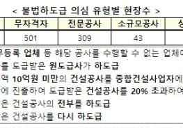 아울러, 불법하도급에 페이퍼컴퍼니(유령회사)가 악용되는 점을 주목하여 국토교통부 및 산하기관 발주 공사 690건을 대상으로 페이퍼컴퍼니 점검을 실시한 결과 15개 업체를 적발하여 조치했다.