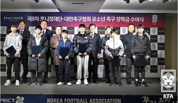 [중앙방송, 김지효기자] 대한축구협회는 12일 오후 서울 종로구 축구회관에서 ‘제8차 포니정재단-대한축구협회 장학금 수여식’을 개최하고, 남녀 중학교 선수 60명에게 장학금을 지급했다.