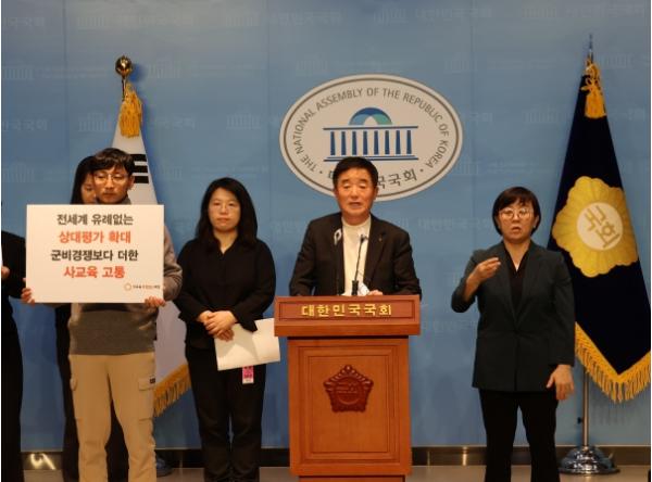 강득구 의원은 “사교육 유발 및 학생 부담을 강화하는 본질적 요인은 현행 상대평가 대입경쟁 체제”라며 “이 문제를 해결하지 않고 정부가 핀셋으로 킬러문항 몇 개를 덜어내는 것으로는 우리 교육의 현실은 결코 바뀌지 않을 것”이라며 정부의 교육정책을 비판했다.