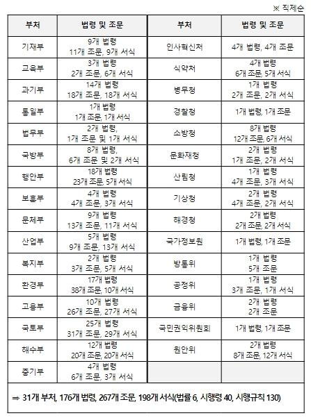 이러한 개인정보 침해 요인이 있는 법령에 대해 소관 부처에서는 개인정보 보호 취지에 맞춰 해당 법령을 개정하는 한편, 법제처는 일괄 개정이 가능한 법령(대통령령)을 종합해 신속하게 개정을 지원할 예정이다.