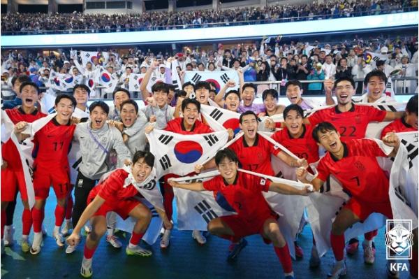 지난 10월 중국 항저우에서 열린 아시안게임 남자 축구 결승전에서 일본을 2-1로 누르고 3회 연속 우승을 거둔 대표팀은 축구종합센터 건립에 보태달라며 총 4000만원의 성금을 최근 대한축구협회에 전달했다. 황선홍 감독을 비롯한 코칭 스태프와 22명 선수 전원이 기부에 참여했다.