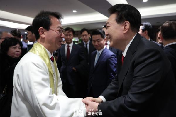 오늘 성탄 예배에는 유인촌 문화체육관광부 장관, 황상무 시민사회수석 등이 참석했다.