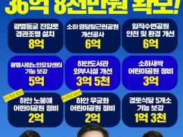 한편 양 의원이 광명지역 현안 해결을 위해 2023년도 확보한 국·도비(행정안전부·교육부 특별교부금, 경기도 특별조정교부금)는 총 109억 5,300만 원이다.