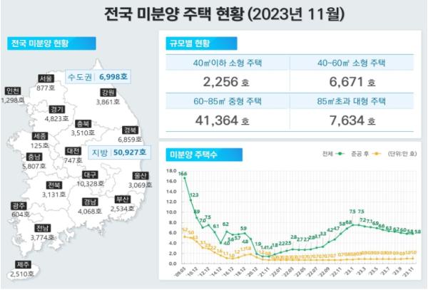 (미분양) 11월말 기준 미분양 주택은 총 57,925호로 집계됐으며, 전월(58,299호) 대비 0.6%(374호) 감소했다.